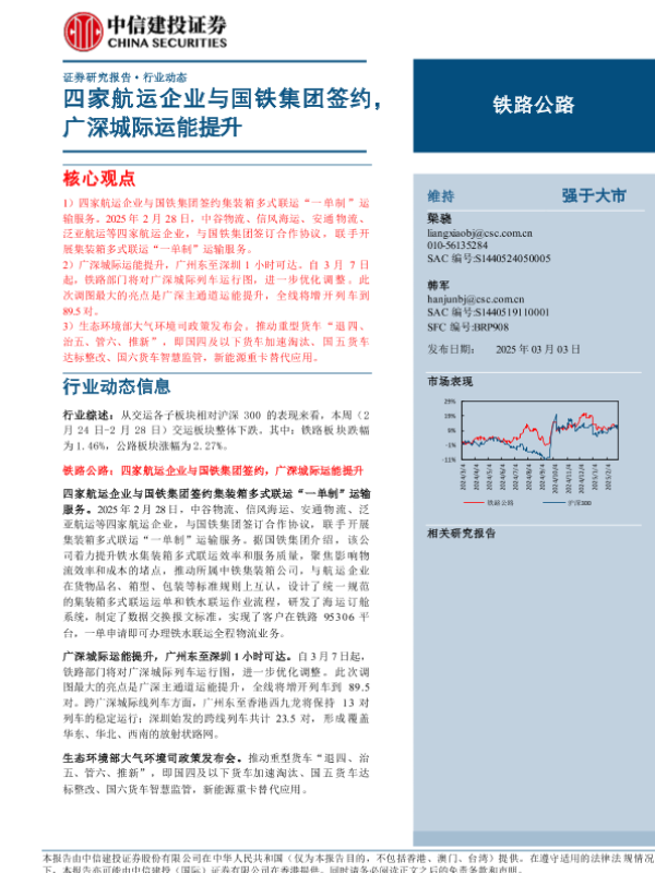 【中信建投证券】【20250303】铁路公路行业:四家航运企业与国铁集团签约,广深城际运能提升-12页 行业研究