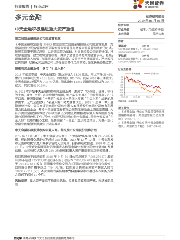 【天风证券】【20190101】多元金融:中天金融积极推进重大资产重组-4页 行业研究