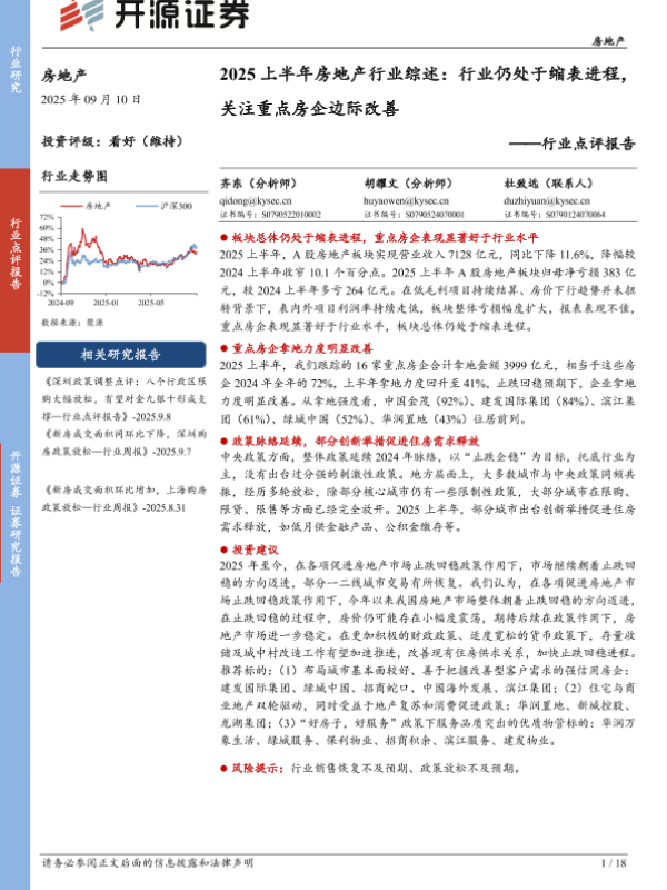 【开源证券】【202509】2025上半年房地产行业综述:行业仍处于缩表进程,关注重点房企边际改善-18页 证券期货研究报告