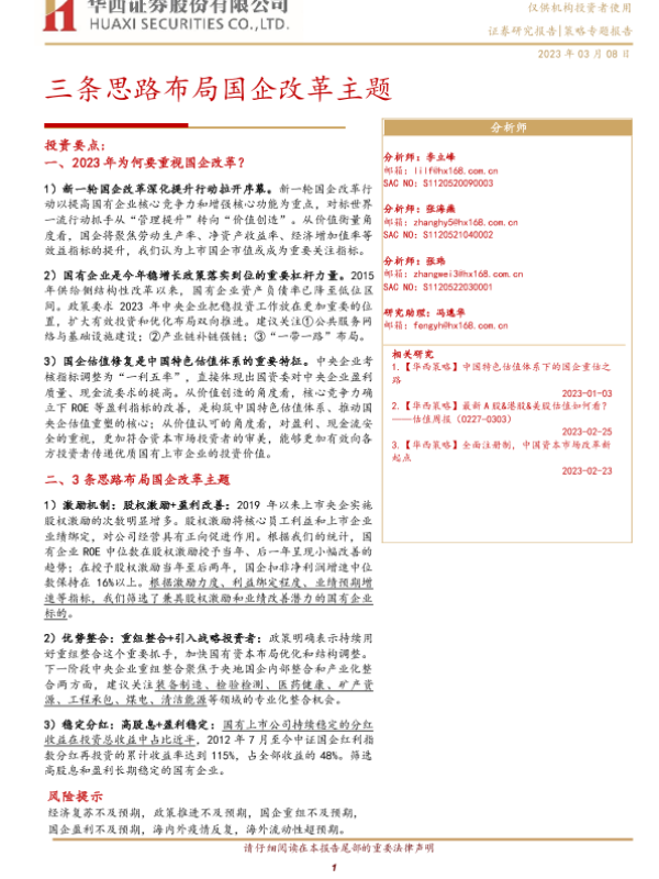 【华西证券】【20230308】三条思路布局国企改革主题-17页 行业研究