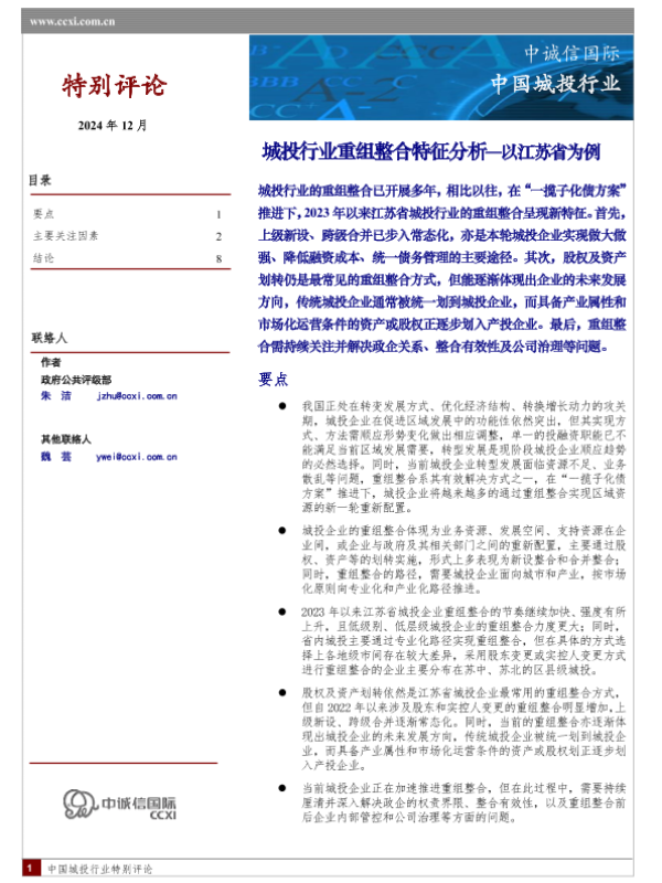 【中诚信国际】【20250109】城投行业重组整合特征分析—以江苏省为例-10页 行业研究