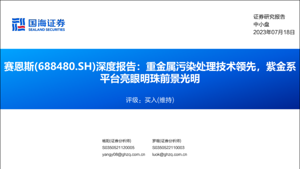 【华泰证券】【20231009】20231009-华泰证券-赛恩斯-688480.SH-国家级重金属污染防治“小巨人”-27页 行业研究
