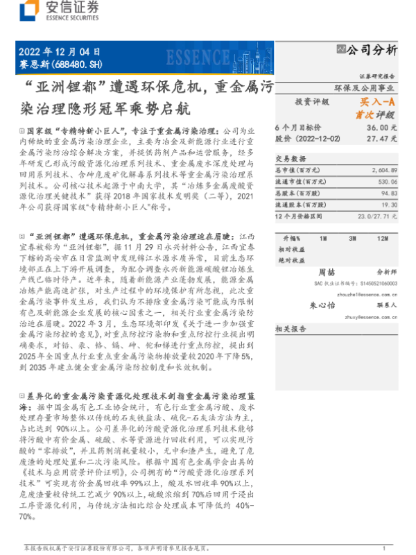 【安信证券】【20221204】“亚洲锂都”遭遇环保危机,重金属污染治理隐形冠军乘势启航-17页 行业研究