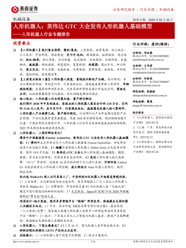 【浙商证券】【20250322】人形机器人:英伟达GTC大会发布人形机器人基础模型-10页 行业研究