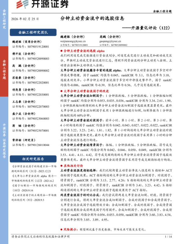 【开源证券】【202602】分钟主动资金流中的选股信息-14页 证券期货研究报告