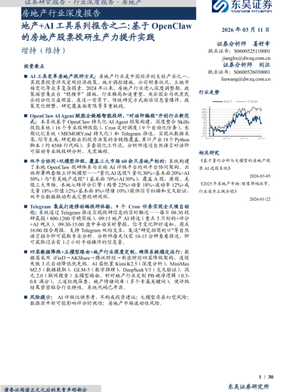 【东吴证券】【202603】地产+AI工具系列报告之二:基于 OpenClaw 的房地产股票投研生产力提升实践-30页 证券期货研究报告