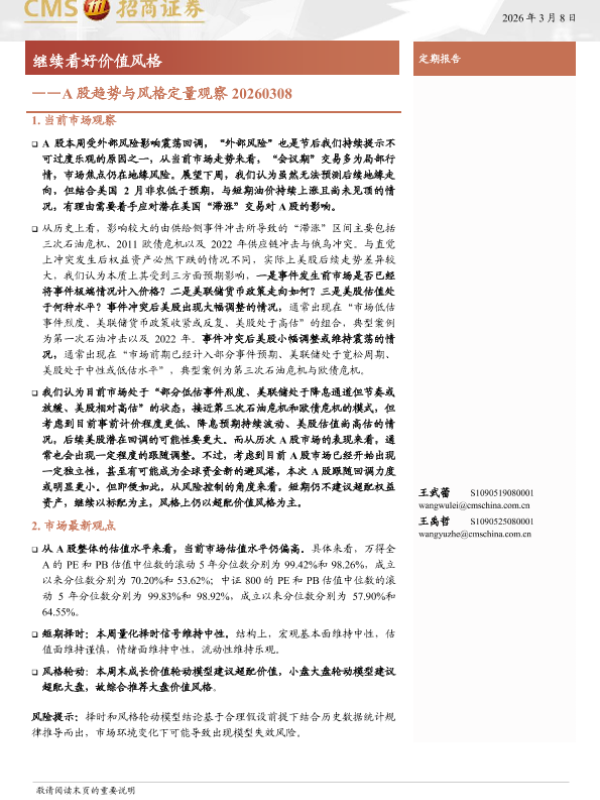 【海通证券】【202603】A股趋势与风格定量观察 20260308-10页 证券期货研究报告