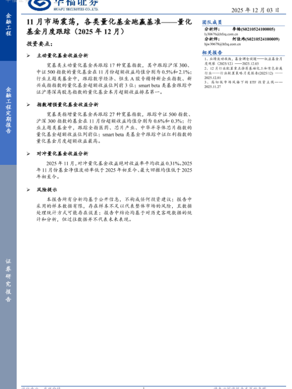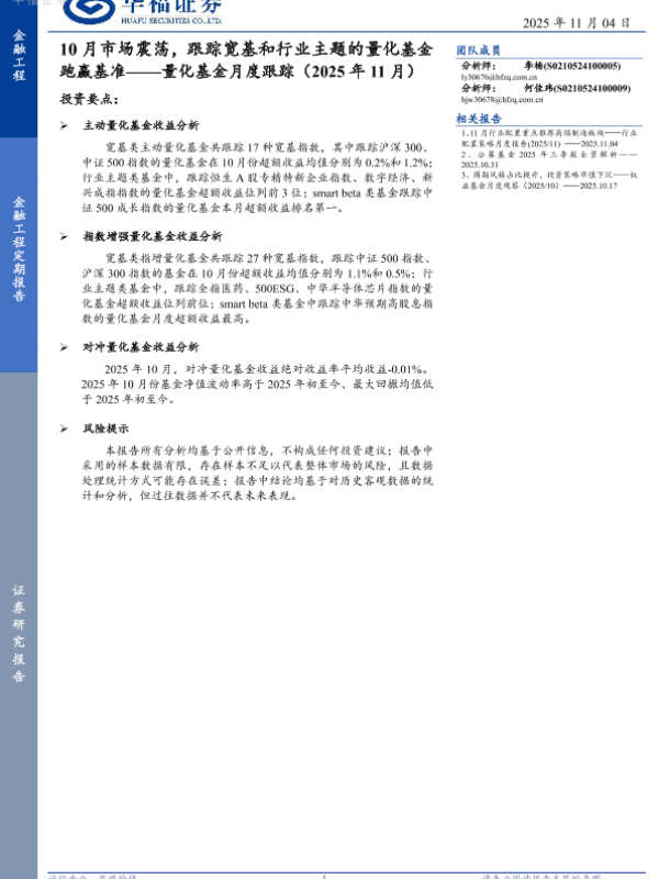 【华福证券】【202511】2025年11月量化基金月度跟踪(2025年11月)_10月市场震荡_跟踪宽基和行业主题的量化基金跑赢基准-14页 证券期货研究报告