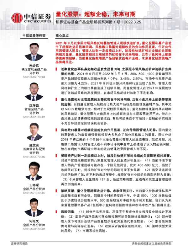 【中信证券】【20220325】私募证券基金产品业绩解析系列第1期:量化股票,超额企稳,未来可期-21页 行业研究