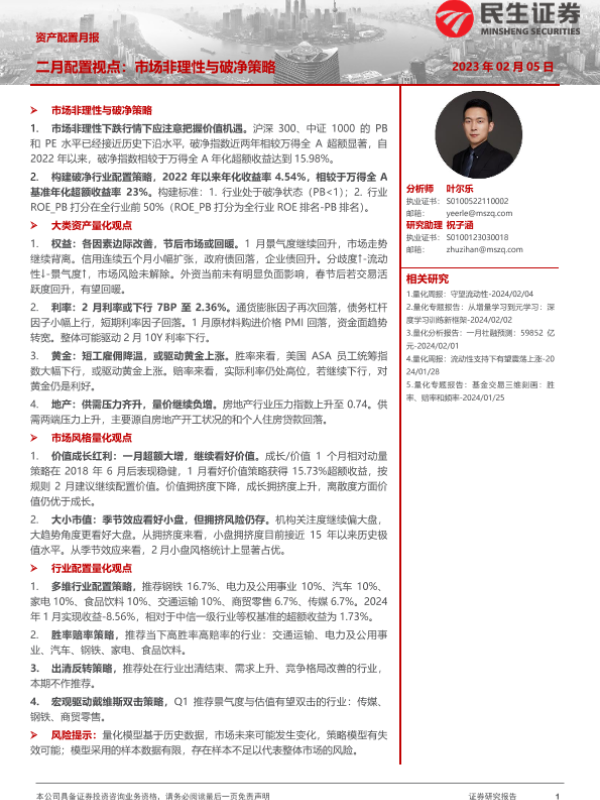 【民生证券】【20240205】资产配置月报:二月配置视点:市场非理性与破净策略-32页 行业研究