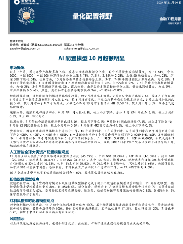 【国金证券】【20241104】量化配置视野:AI配置模型10月超额明显-11页 宏观策略