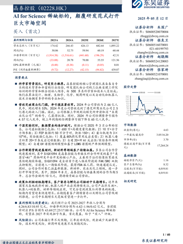 【东吴证券】【20250512】晶泰控股(02228.HK)AI+for+Science稀缺标的,颠覆研发范式打开巨大市场空间-40页 公司研究