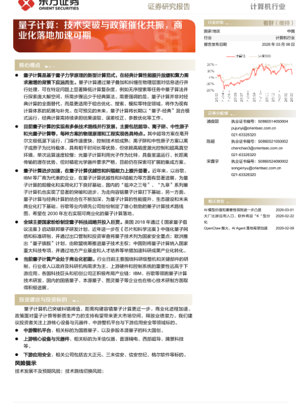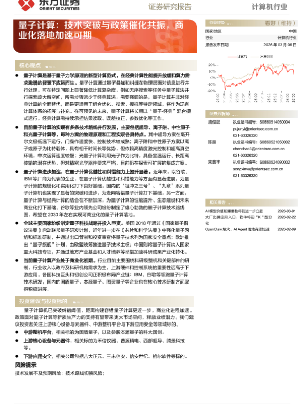 【东方证券】【202603】计算机行业量子计算:技术突破与政策催化共振,商业化落地加速可期-42页 证券期货研究报告