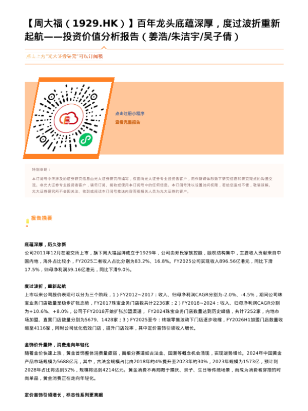 【光大证券】【202603】百年龙头底蕴深厚,度过波折重新起航——投资价值分析报告-2页 证券期货研究报告