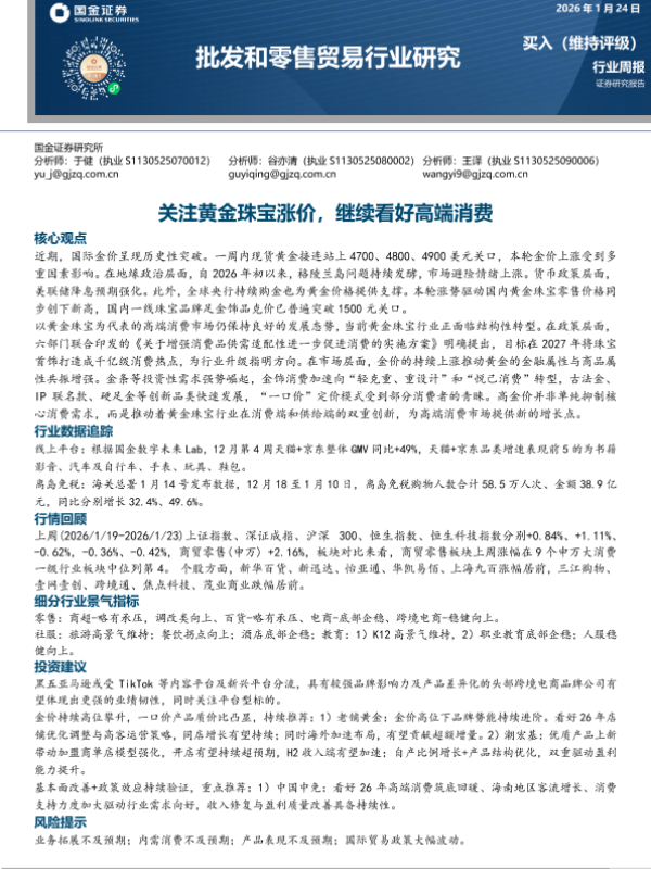 【国金证券】【202601】关注黄金珠宝涨价,继续看好高端消费-8页 证券期货研究报告