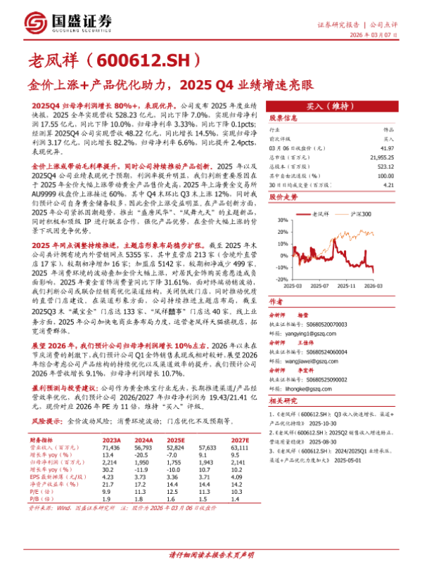 【国盛证券】【2026】金价上涨+产品优化助力,2025 Q4业绩增速亮眼-3页 证券期货研究报告