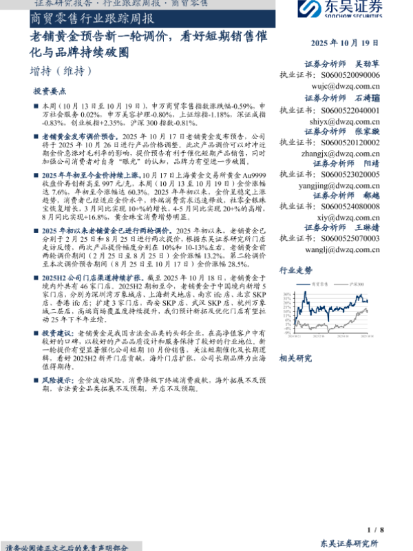 【东吴证券】【202510】老铺黄金预告新一轮调价,看好短期销售催化与品牌持续破圈-8页 证券期货研究报告