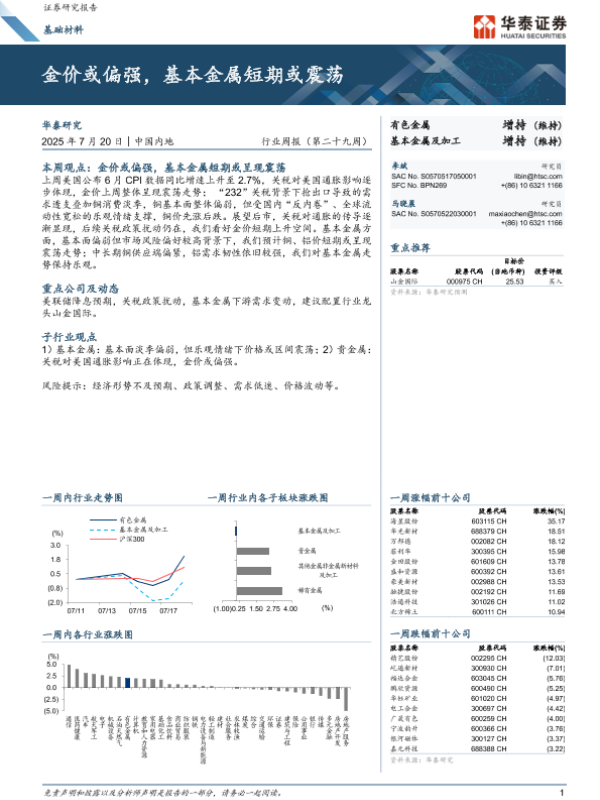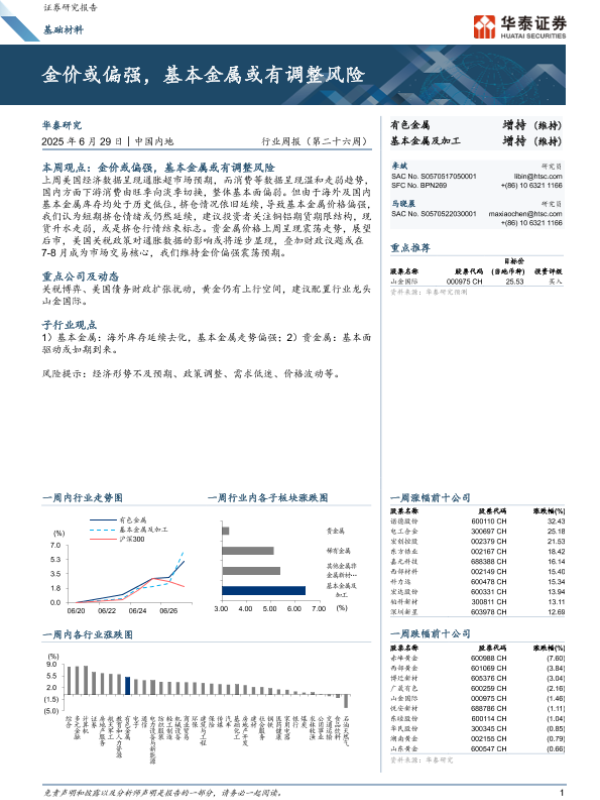 【华泰证券】【20250629】基础材料行业金价或偏强,基本金属或有调整风险-14页 证券期货研究报告