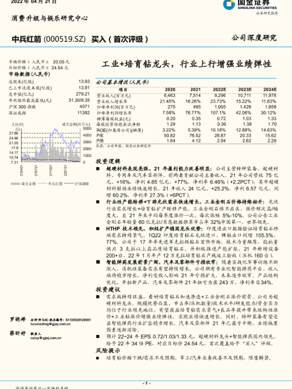 【国金证券】【20220421】国金证券-中兵红箭-000519.SZ-工业+培育钻龙头,行业上行增强业绩弹性-30页 行业研究