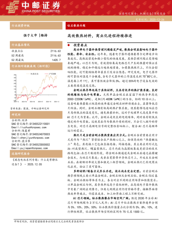 【中邮证券】【202512】机械设备|深度报告:钻石散热专题-高效散热材料,商业化进程持续推进-16页 证券期货研究报告