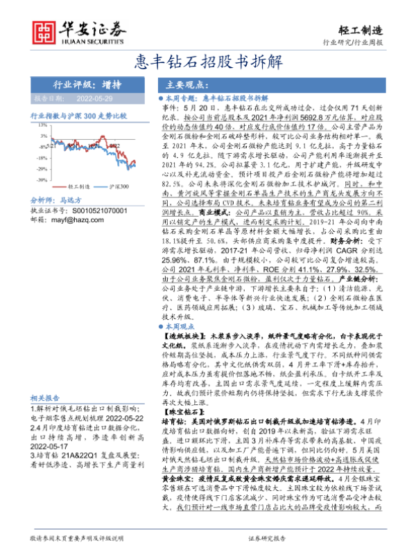 【华安证券】【20220529】20220529-华安证券-轻工制造行业周报:惠丰钻石招股书拆解-29页 行业研究