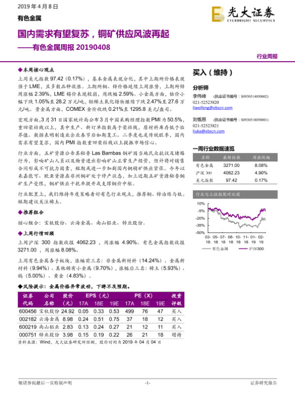 【光大证券】【20190408】20190408-光大证券-有色金属周报:国内需求有望复苏,铜矿供应风波再起-12页 行业研究