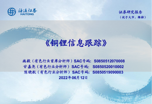【海通证券】【20220612】铜锂信息跟踪-5页 行业研究