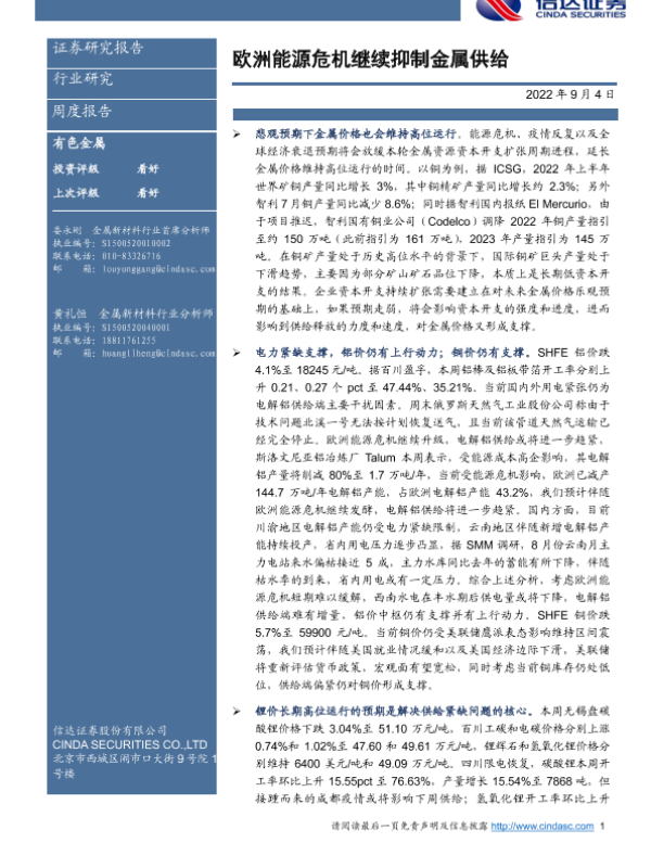 【信达证券】【20220904】20220904-信达证券-有色金属周度报告:欧洲能源危机继续抑制金属供给-12页 行业研究