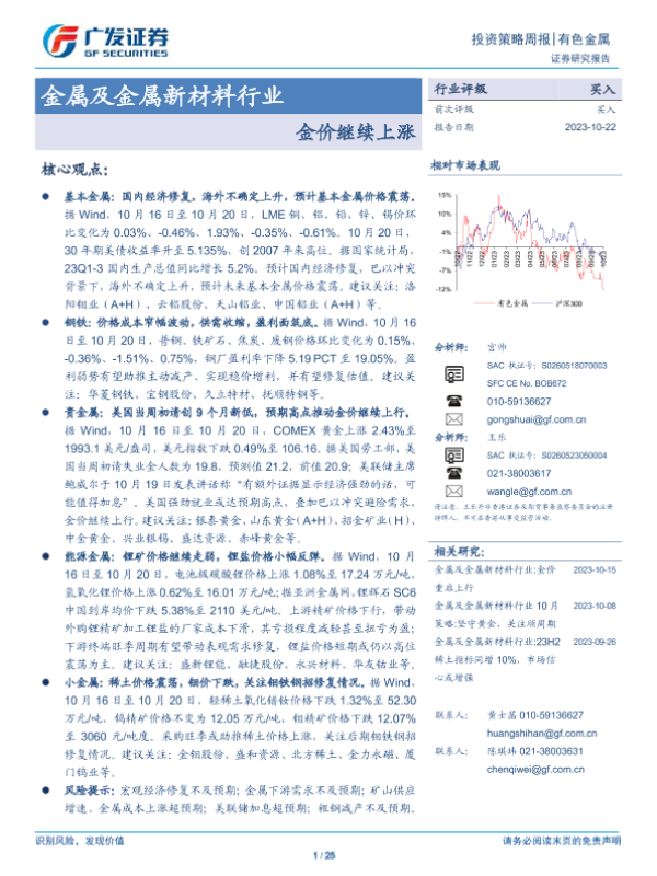 【广发证券】【20231022】20231022-广发证券-金属及金属新材料行业投资策略周报:金价继续上涨-25页 行业研究
