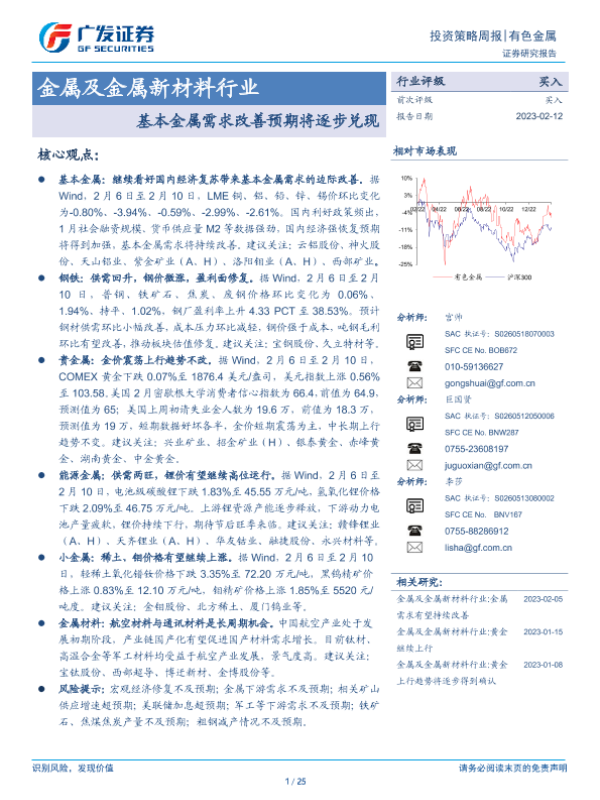 【广发证券】【20230212】20230212-广发证券-金属及金属新材料行业投资策略周报:基本金属需求改善预期将逐步兑现-25页 行业研究