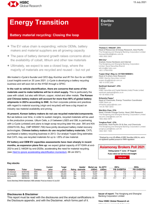 【The Hongkong and Shanghai Banking Corporation Limited】【20210713】全球能源行业-电池材料回收:闭合回路-27页 行业研究