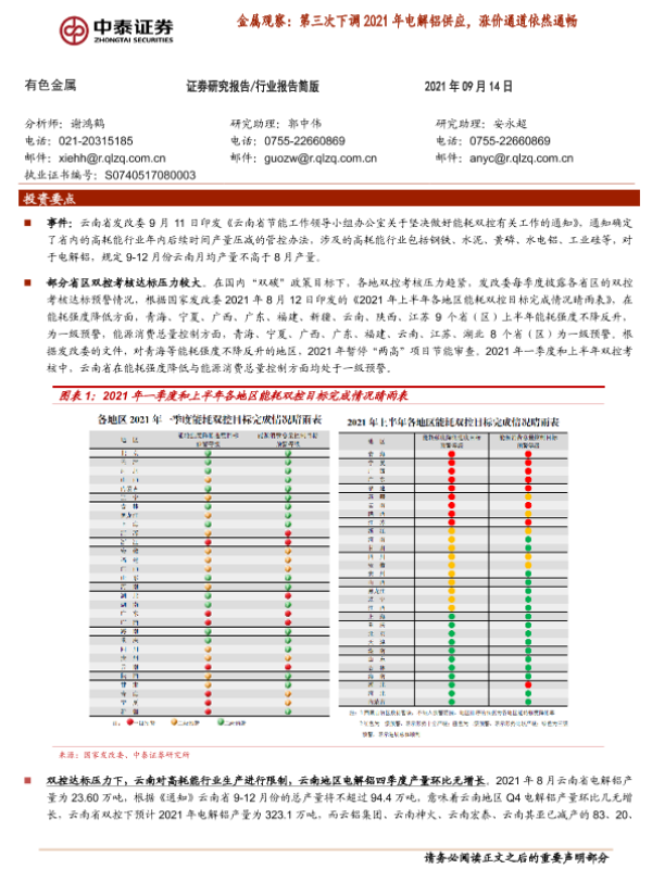 【中泰证券】【20210914】金属观察:第三次下调2021年电解铝供应,涨价通道依然通畅-5页 行业研究
