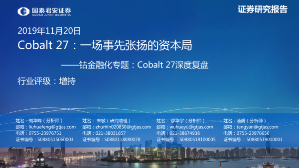 【国泰君安证券】【20191120】20191120-国泰君安-钴金融化专题:Cobalt27深度复盘:一场事先张扬的资本局-27页 行业研究