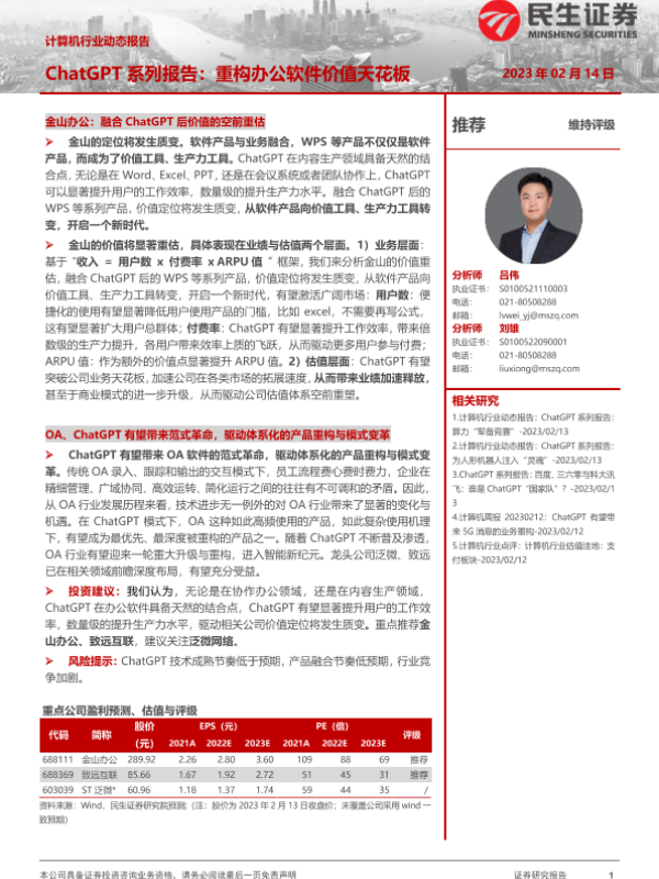 【民生证券】【20230214】ChatGPT系列报告:重构办公软件价值天花板-11页 行业研究
