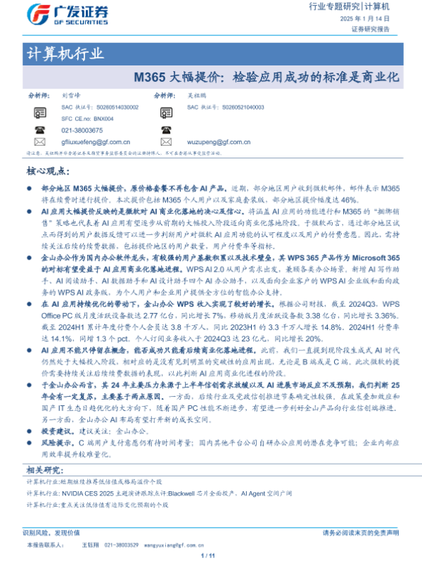 【广发证券】【20250114】M365大幅提价:检验应用成功的标准是商业化-11页 行业研究