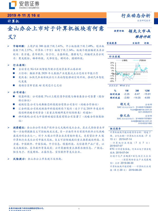 【安信证券】【20191116】20191116-安信证券-计算机行业动态分析:金山办公上市对于计算机板块有何意义?-16页 行业研究