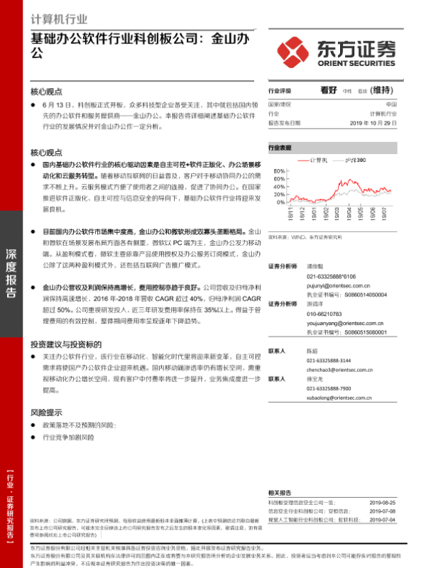 【东方证券】【20191029】计算机行业:基础办公软件行业科创板公司:金山办公-17页 行业研究