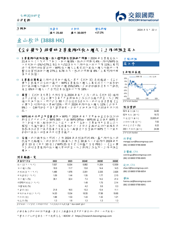 【开源证券】【20240524】港股公司信息更新报告:游戏增速有望回升,WPSAI商业化进展顺利-3页 行业研究