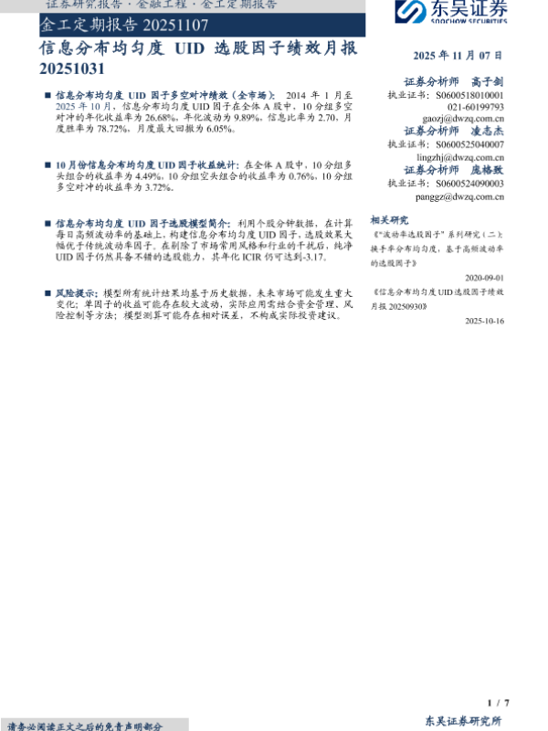 【东吴证券】【202511】信息分布均匀度 UID选股因子绩效月报-7页 证券期货研究报告
