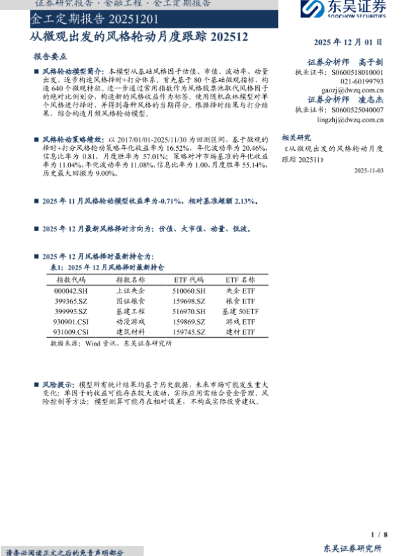 【东吴证券】【202512】从微观出发的风格轮动月度跟踪202512-8页 证券期货研究报告