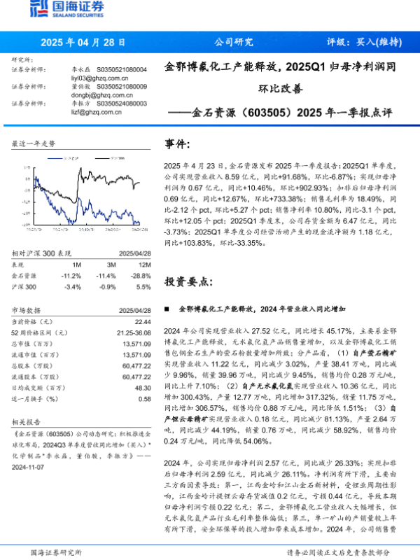 【国海证券】【20250428】金石资源2025年一季报点评-10页 公司研究