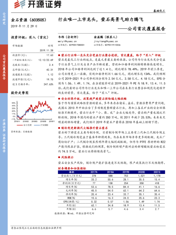 【开源证券】【20191128】行业唯一上市龙头,萤石高景气助力腾飞-24页 行业研究