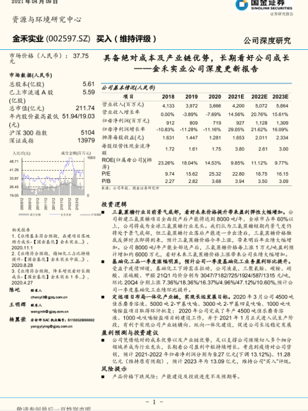 【国金证券】【20210409】金禾实业公司深度更新报告:具备绝对成本及产业链优势,长期看好公司成长-15页 行业研究
