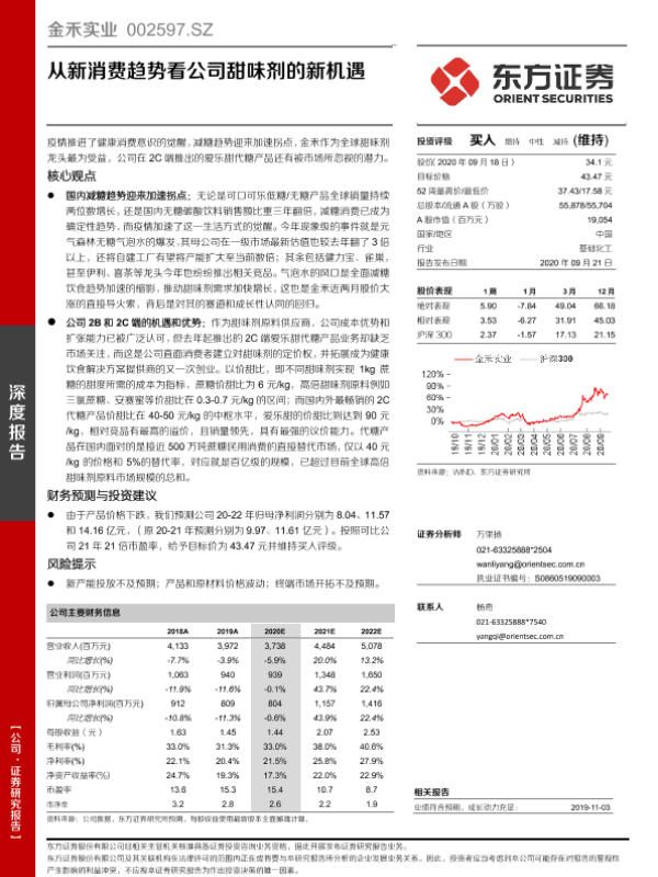 【东亚前海证券】【20220927】甜味剂龙头扩大布局,无糖理念拉动需求——金禾实业(002597.SZ)首次覆盖报告-25页 行业研究