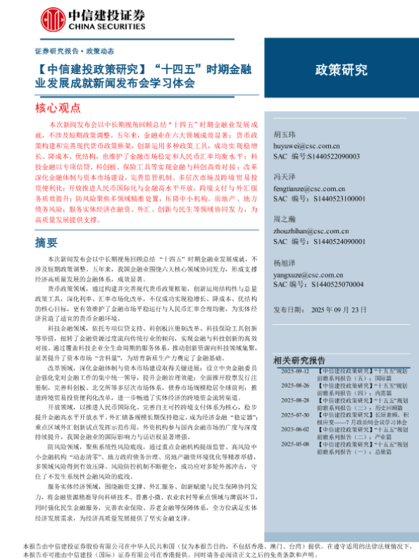【中信建投证券】【202509】【中信建投政策研究】“十四五”时期金融业发展成就新闻发布会学习体会-13页 证券期货研究报告