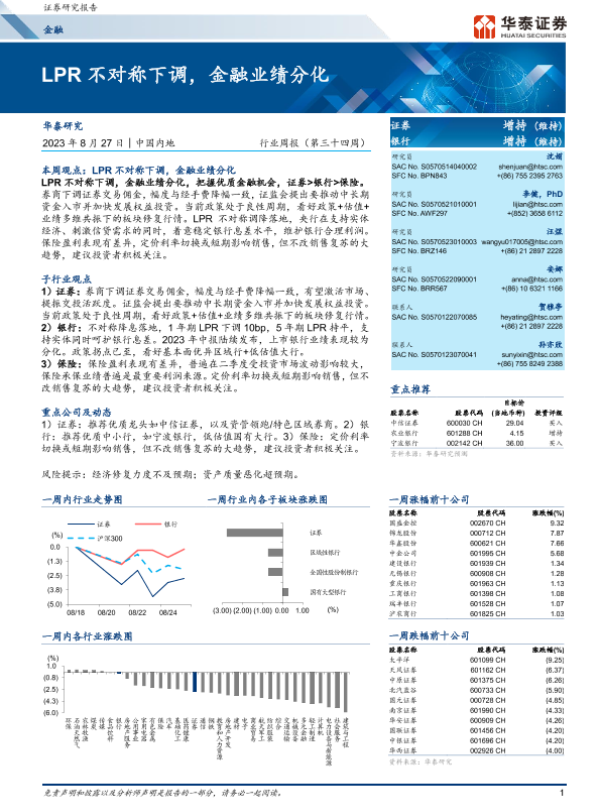 【华泰证券】【20230827】LPR不对称下调,金融业绩分化-31页 行业研究