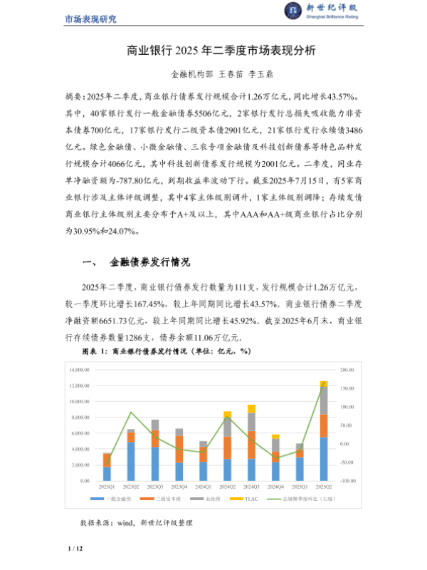 【新世纪评级】【20250805】商业银行业2025年二季度市场表现分析-12页 行业研究