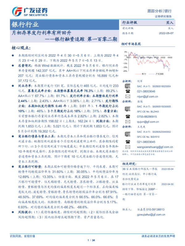 【广发证券】【20220507】月初存单发行利率有所回升——银行融资追踪第一百零二期-34页 行业研究