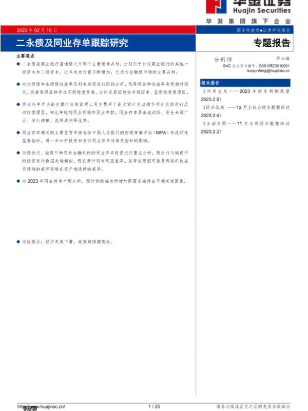 【华金证券】【20230210】二永债及同业存单跟踪研究-25页 行业研究