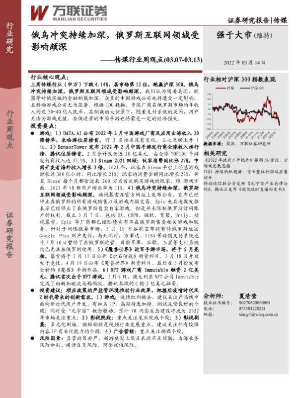 【万联证券】【20220314】俄乌冲突持续加深,俄罗斯互联网领域受影响颇深-13页 行业研究